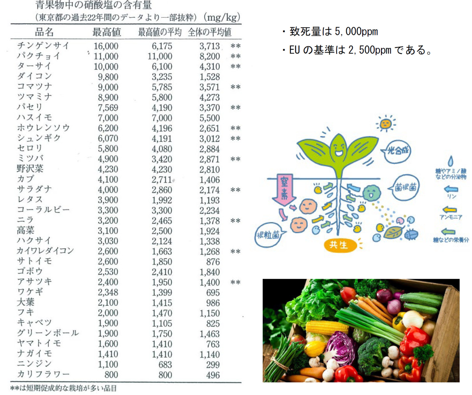 1 現代農業における問題点 a 健康な植物に菌や虫は寄り付かない。 b 化学肥料は葉や実や根の細胞を破壊して、虫や菌が生息できる環境に変える。 c 化学肥料の成分は、硫酸アンモニウムである。(NH4)2SO […]