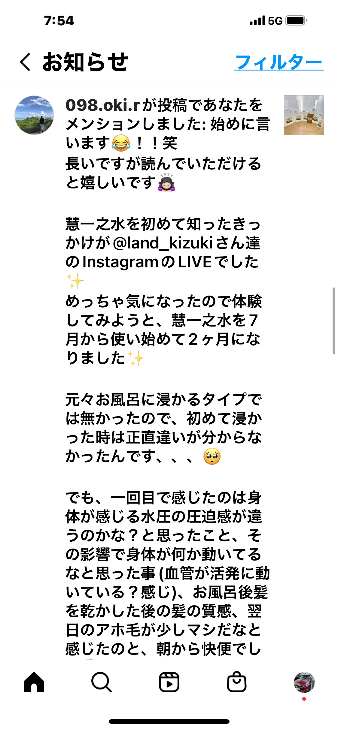 BLOG, お客様の体験談 「慧一之水」へ嬉しい感想 2022-10-02 この商品がどれだけ凄いかは 使った人じゃないと分からない そして ワクワクする商品じゃなければ 広がらん この慧一之水 どのタイミングで あなたにドンピシャにはまるかは 分からない そんな素直な感想を頂いたので 今日はそちらを載せます 俺は凄く嬉しい😁