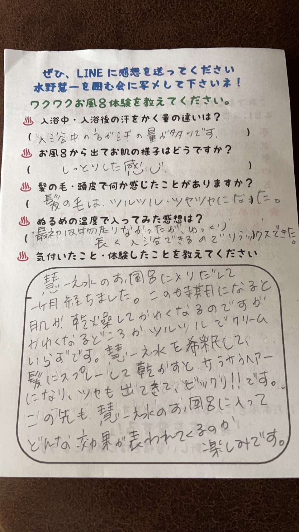 本当にこの慧一之水+Waka-ga-El極のお風呂が気にいってくださっていて