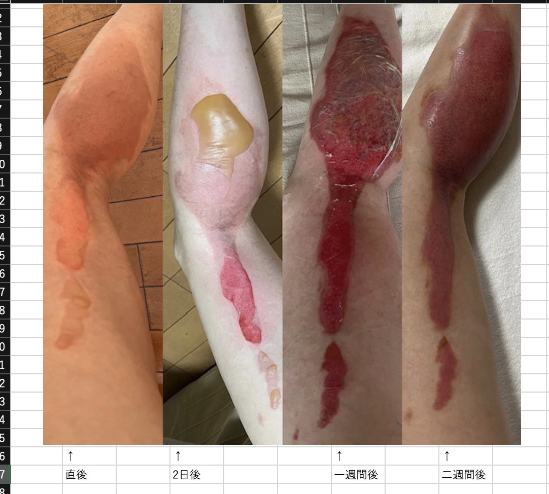 一応火傷画像送りますね。数か月後が楽しみですね。