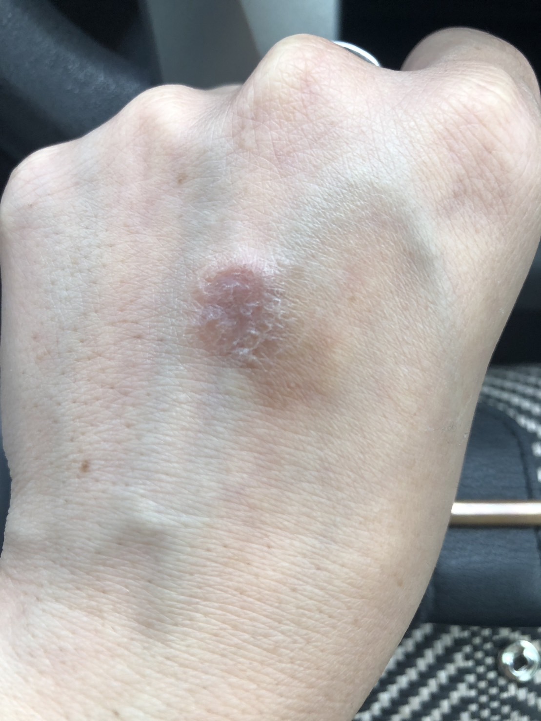 去年父が亡くなり落ち着いた後11月頃から出てきたこの手の甲の発疹。