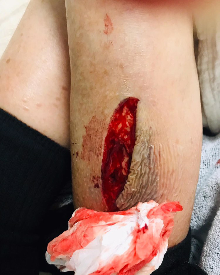 肉がえぐられ大出血からの救急搬送からの14針縫う手術🤣