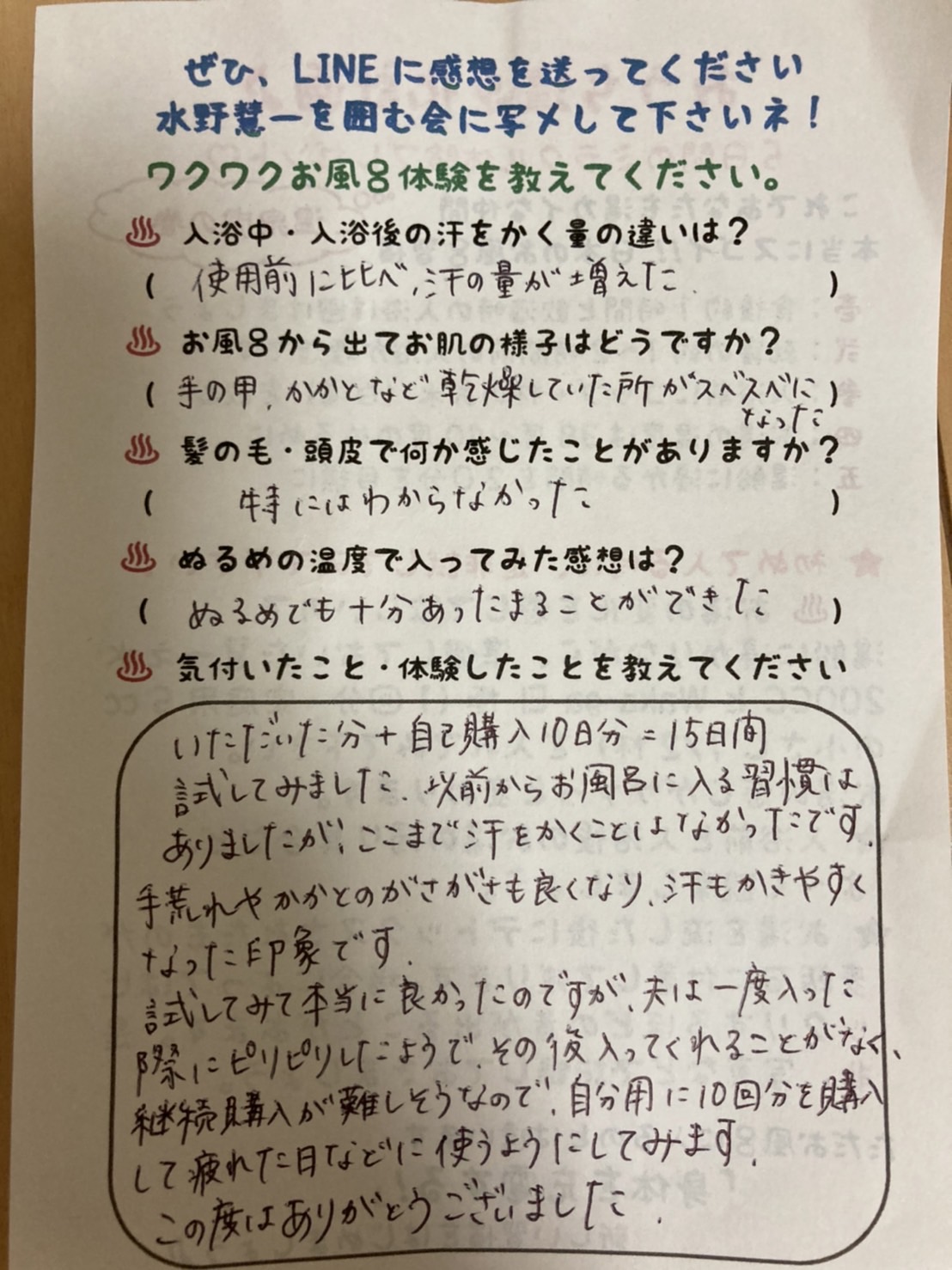 10日入った辺りぐらいからジワジワと汗が出てきて