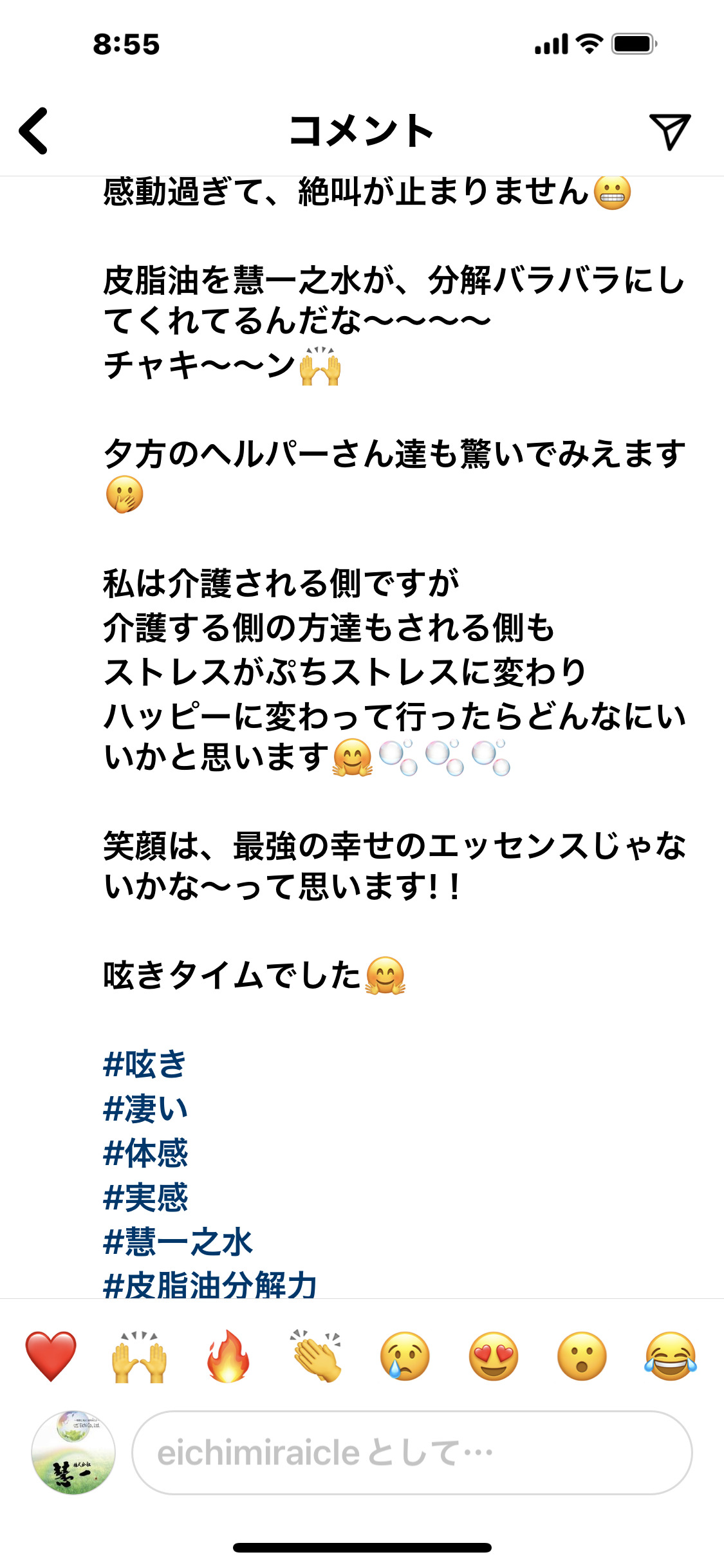 清拭をする時も、お湯の中に慧一之水を入れて拭き上げるだけでも、体臭が気にならなくなるような気がします。