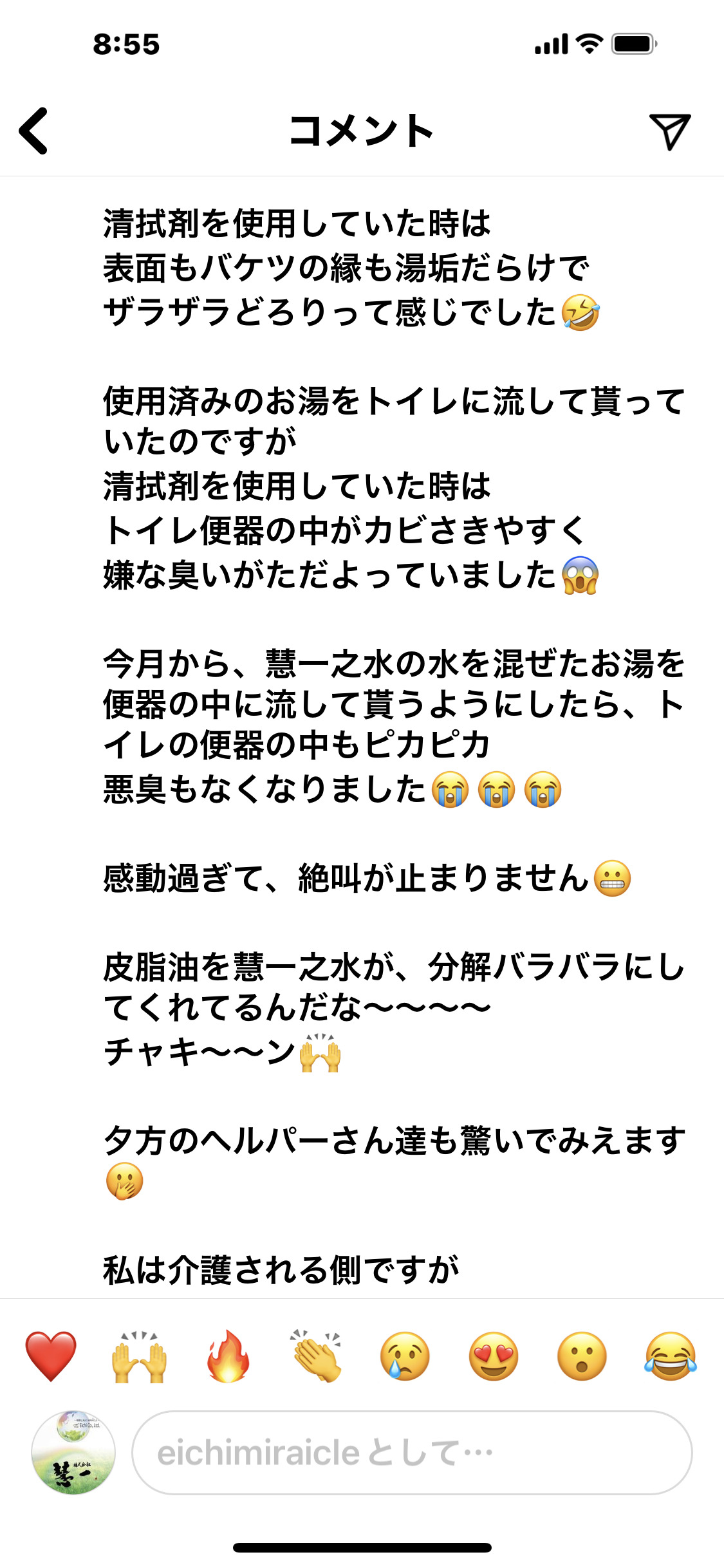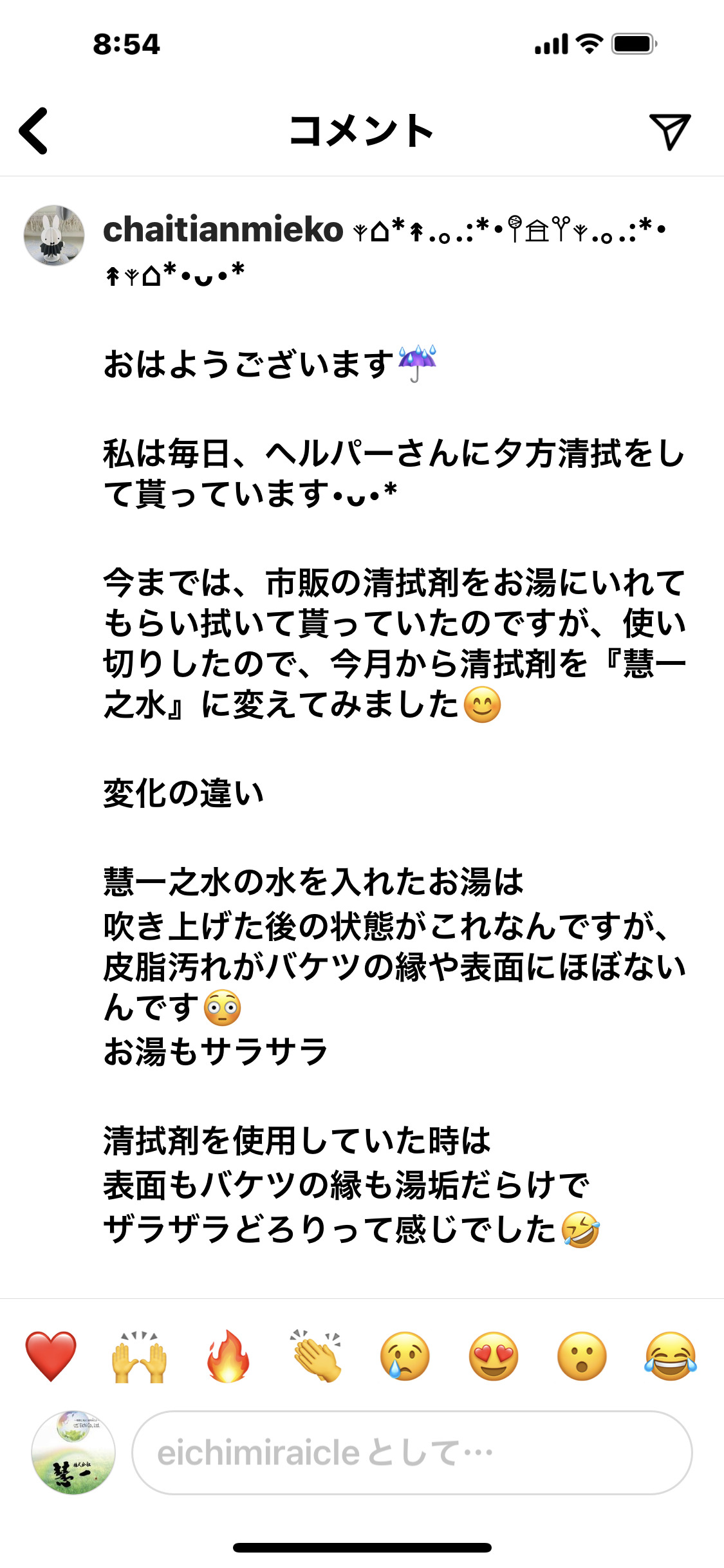 清拭をする時も、お湯の中に慧一之水を入れて拭き上げるだけでも、体臭が気にならなくなるような気がします。